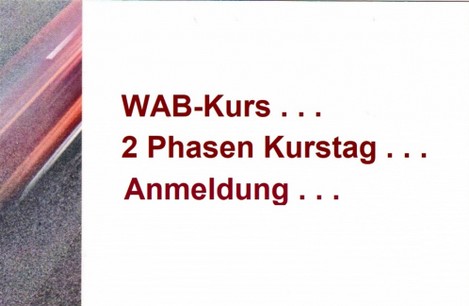 Änderungen bei den FührerausweisvorschriftenNewsNach dem Bestehen der praktischen Prüfung (Prüfung nach dem 1.1.2017) musst Du nur noch einen Tag Weiterausbildung (WAB) im ersten Jahr nach Bestehen Deiner Führerprüfung machen. Bisher waren es zwei Tage.Norbert Schneider | 10/4/2019Lesen